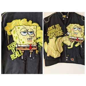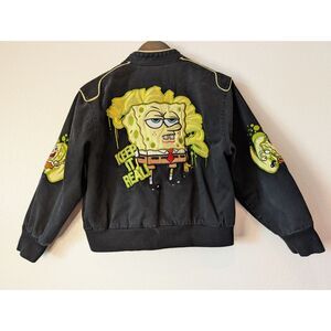 jackets, this piece showcases iconic SpongeBob artwork on the front, back, and sleeves