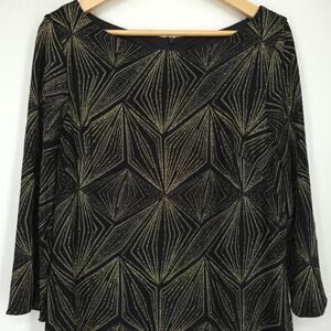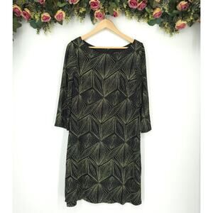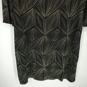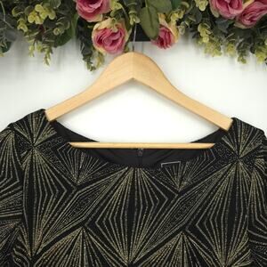 JH Evenings Black Gold Geometric Glitter Print Quarter Sleeve Shift Dress 16