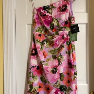 New with Tags. JH Evenings Floral Pink One-Shoulder Dress, sz 14