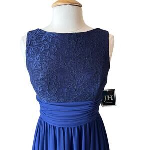 JH Evenings Womens Floral Lace Chiffon Sleeveless Dress Size 8 Navy Blue Formal