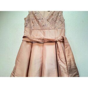 JH Evenings Womens V Neck High-Low Dress Tie Waist Size 4 Pink Sleeveless Summer