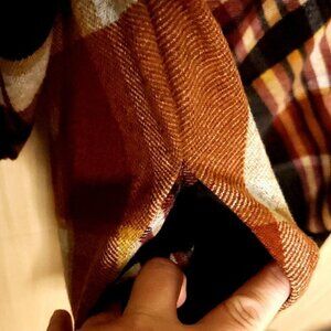 JH women’s new brown tan plaid soft stretchy ruffle shoulder knit dress. New Condition. See below for measurements.