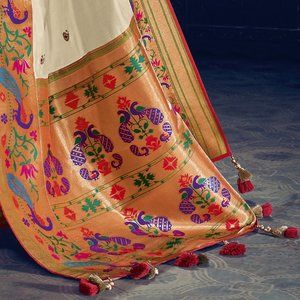 JHEAPS GORGEOUS BRIGHT WHITE BOLLYWOOD STYLE PAITHANI SILK SAREE