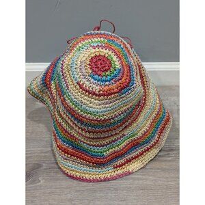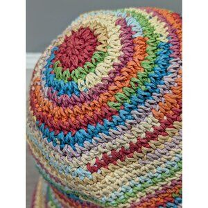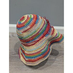 JHats Rainbow Straw Crocheted Floppy Hat One Size Beach Tie Summer Outdoors. Please let me know if you have any questions. Thanks for looking!