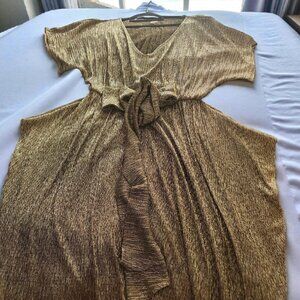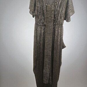 JIBRI V-Neck Metallic Sheer Accordion Maxi Dress Sz 3 (22/24W)