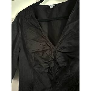 Gently pre-owned. No rips or stains. Crinkle material. Side zip closure. Gathered details at bust.