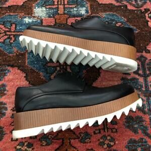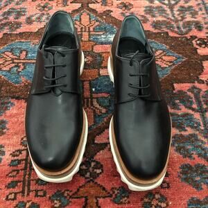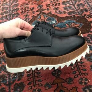 JIL SANDER Black Leather Wooden Platform Derbys Flats Shoes Size 36