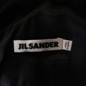 JIL SANDER shift dress comes in black crepe with a V neck, and back slit cutouts. Made in Italy.