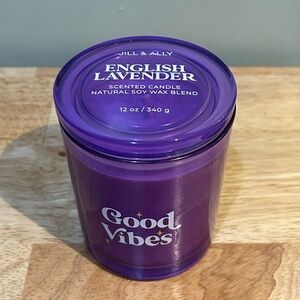 Absolutely to die for scented candle made by JILL & ALLY. English Lavender scented candle made with a soy wax blend. Tight sealing lid. Jill & Ally Good Vibes Candle is a gorgeous purple color in a sturdy jar with lid. 12oz candle. Brand new.