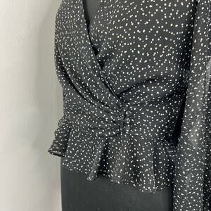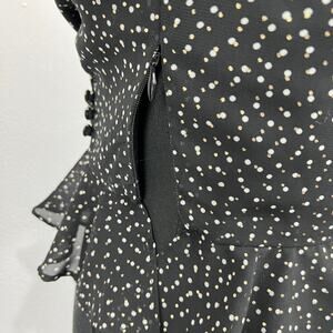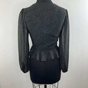 JILL JILL STUART Black White Polka Dot Chiffon Faux Wrap Ruffle Hem Blouse 4
