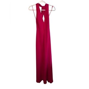JILL Jill Stuart Plunge Deep V Cross Back Cut Out Maxi Dress Gown Gossip Pink 0
