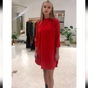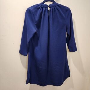 JILL LINDSEY Logan Navy Blue Quarter Sleeves Relaxed Fit Mock Neck Mini…