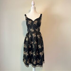 JILL STUART Floral Jacquard A-line Mini Dress NEW Size 6 Black & Gold