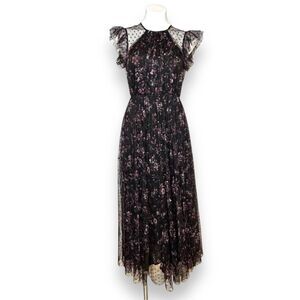JILL STUART Polka Dot Tulle Dress 2 Pleated Flutter Sleeve Femke Midi XS