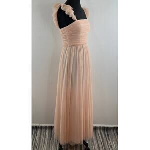 JILL Stuart Pink Sleeveless Ruffle Shoulder Polka-Dot Tulle Maxi Dress 4 6 NEW