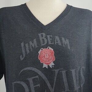 Pre-owned Jim Beam Devil's Cut V-neck tee size XL. Charcoal grey V-neck with short sleeves.