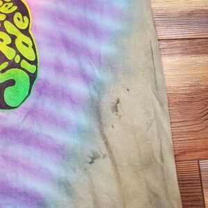 Has some black marks that may or may not come out with some stain treatment. Not as noticeable due to the tie dye. In beautiful condition otherwise. See photos.