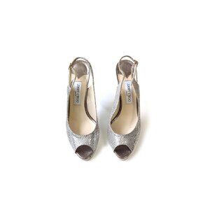 JIMMY CHOO 40 'Nova' Champagne Slingback 100mm Heels Womens Size 9