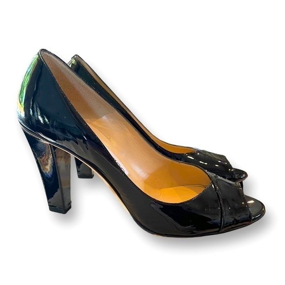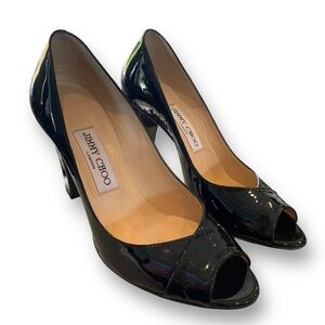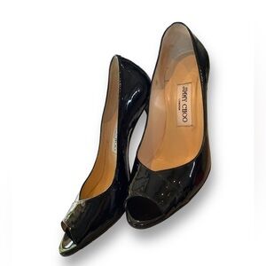 JIMMY CHOO | $770 Black Patent Leather Peep Toe Pump Made in Italy Size 37