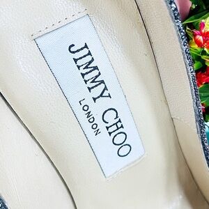 JIMMY CHOO Abel 100mm Pumps in Anthracite Silver Glitter Metallic 34.5
