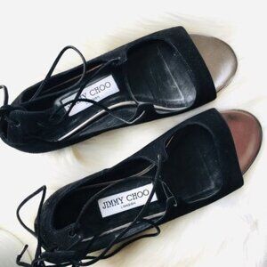 JIMMY CHOO Authentic Vernie Black Lace Up Gladiator Sandals Womens Size 5.5 EUC