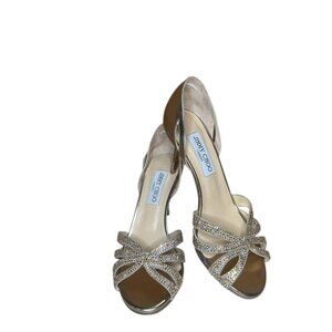 JIMMY CHOO Bauble d'Orsay Sandal Sparkly Crystal Heels Size 37.5 (7)