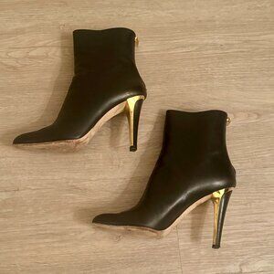 JIMMY CHOO Bella Calf Leather Black Booties with Gold Heel - EU 39