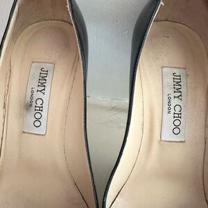 JIMMY CHOO Black Patent Leather & Silver Snake Cap Toe Bahama Pumps size 38 (7.5
