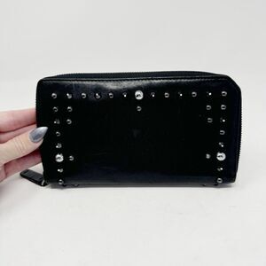 JIMMY CHOO | Black & Silver Studded Zippy Wallet