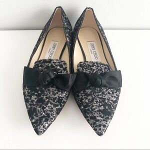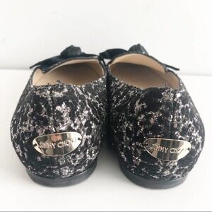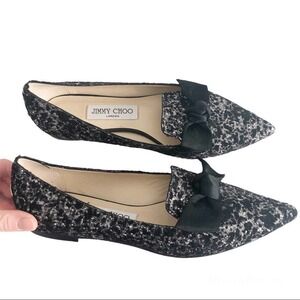 JIMMY CHOO Black and Silver Gabie Glitter Slip On Bow Flats Size 36 / US 6