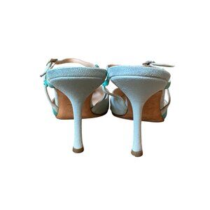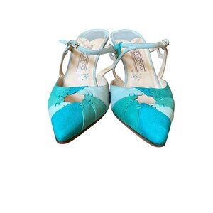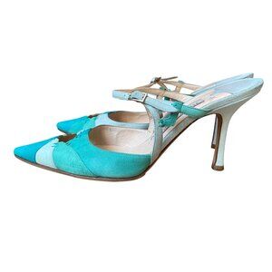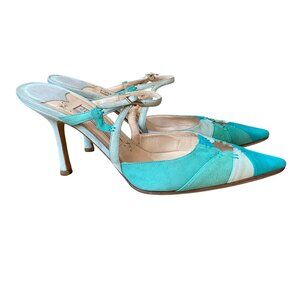 JIMMY CHOO Blue Suede Color Block Patchwork Slingbacks - Size 38.5