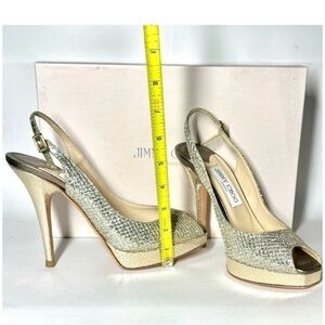JIMMY CHOO CLUE GLITTER SLINGBACK PLATFORM PEEP TOE HIGH HEEL PUMPS SANDAL 37