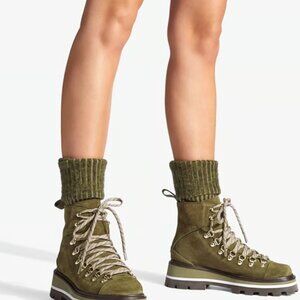 JIMMY CHOO Chike Flat Caper Green Crosta Suede Anle Boots with Knitted Sock 39