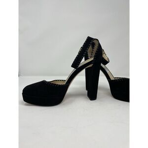 JIMMY CHOO Daphne Platform Heels Women 40 Ankle Strap Black Suede Leather
