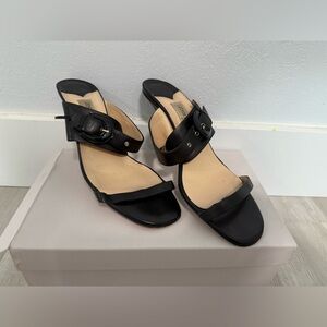 JIMMY CHOO EU 40 Open Toe Ankle Strap BLACK LEATHER SANDALS Heels US 9-9.5 Italy