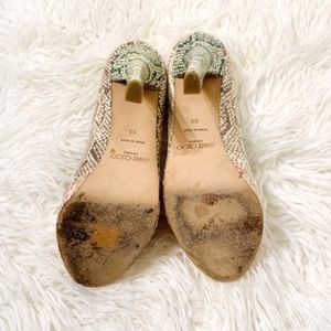 Beautiful, Jimmy Choo platform pumps! Pre-owned with minor wear/tear in certain areas (please see pics), but overall beautiful statement shoes with many miles left on them. Box/dust bag not included.