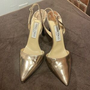 JIMMY CHOO Gold Champagne Pointed D’Orsay Sling Back Heels sz. 37.5