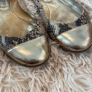 JIMMY CHOO | Gold Toe Snake Skin Print Luxury Flats | Size 35 EU Women’s