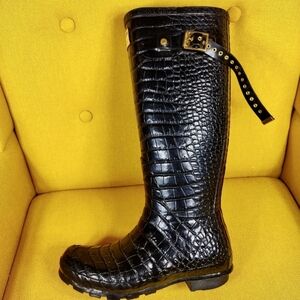 JIMMY CHOO & HUNTER Special Edition Rain Croc Black Animal Print Lined Boot Sz 4