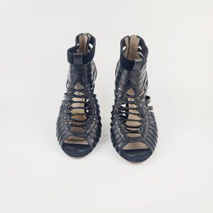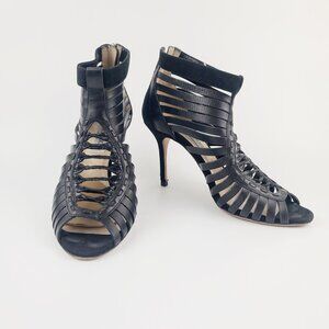 JIMMY CHOO Heels Black Gladiator Multistrap Caged Sandals Size 38 Retail $1050