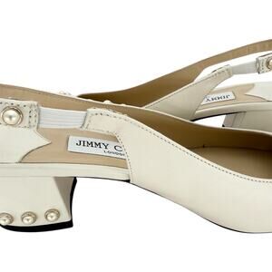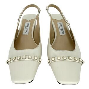 JIMMY CHOO Hya 45mm Faux Pearl Embellished Leather Pumps EU 38.5 US 8.5 Ivory