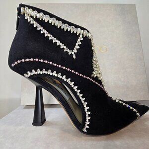 JIMMY CHOO Kendrix 100 - Suede Booties with Embroidery Black/White