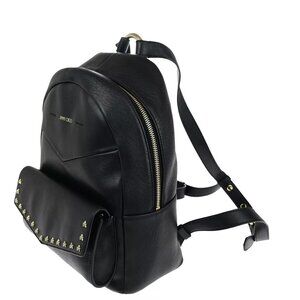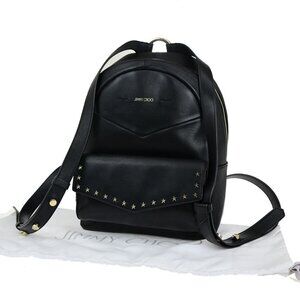 JIMMY CHOO Logo Star Studded Backpack Bag Leather Black GHW