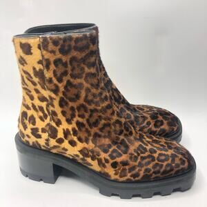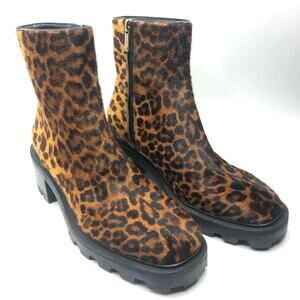 Jimmy Choo Womens Mava Leopard Print Calf Hair Lug Sole Ankle Boots Size 37 Size 7