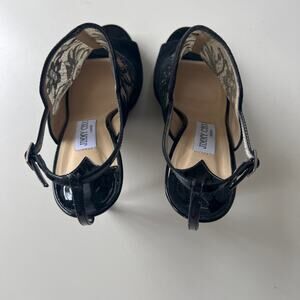 JIMMY CHOO Maylen Suede Floral Lace Black Sling back Bootie 4" Heels EU 39