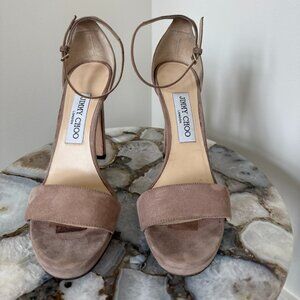 JIMMY CHOO Misty 120 Suede Ballet Pink Platform Sandal - Gently Worn - Size 37.5