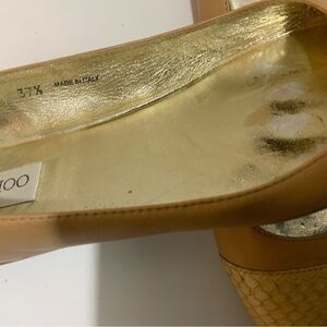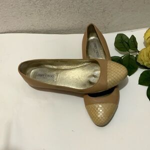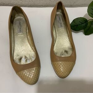 JIMMY CHOO Nude Leather & Python Cap Toe Ballet Flats Neutral Size EU 37.5, US 7