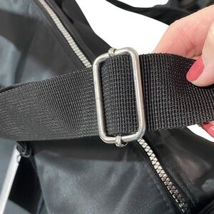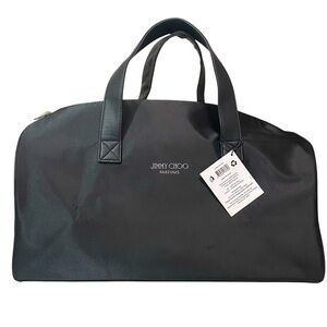 • Jimmy Choo Parfums Duffle Bag. Measurements: length 19” bottom 8” height 10” handle drop 5” and adjustable strap from 29” - 58”.