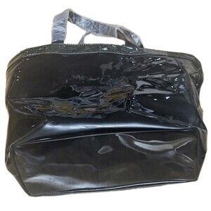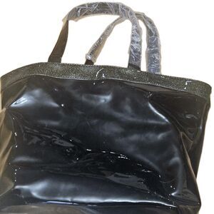 JIMMY CHOO Patent PVC BLACK Glossy X-Large Parfums Tote Bag with Metallic Trim