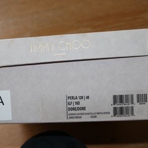 JIMMY CHOO Perla Wedge Sandal Jute Raffia and Gold Size 9 / 40